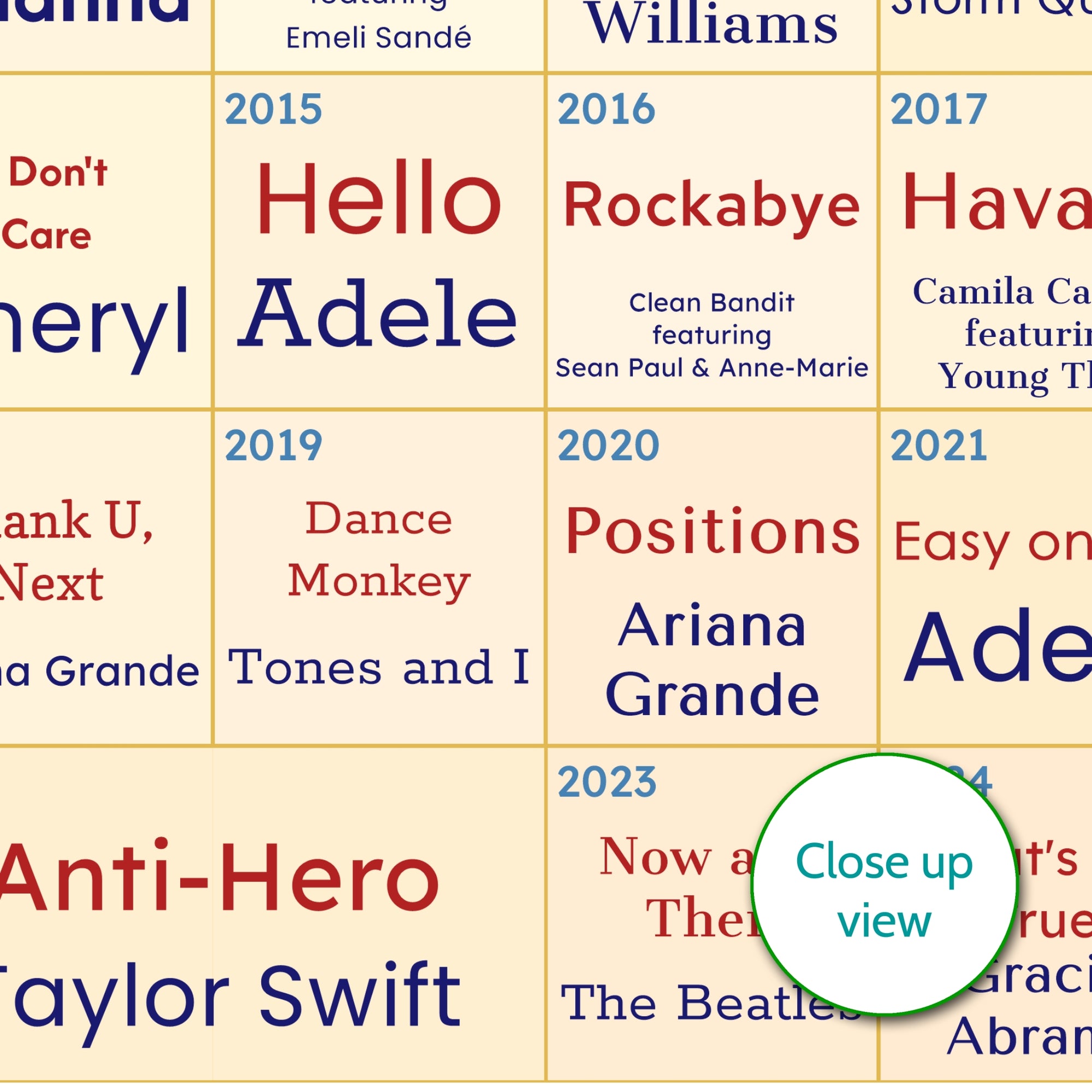 Whether you’re gifting a music fan or marking a milestone birthday, this number one songs poster is a fun and nostalgic music keepsake.