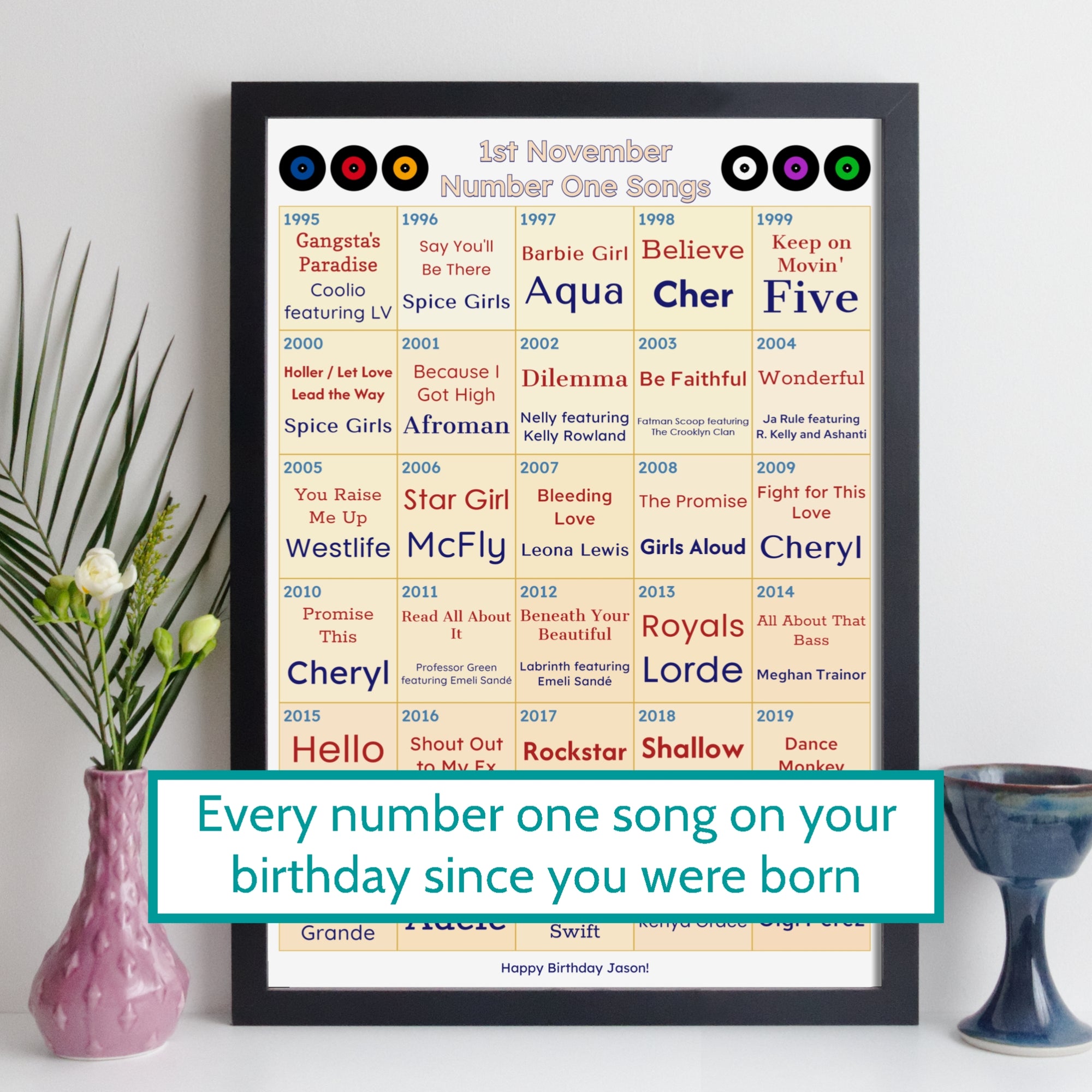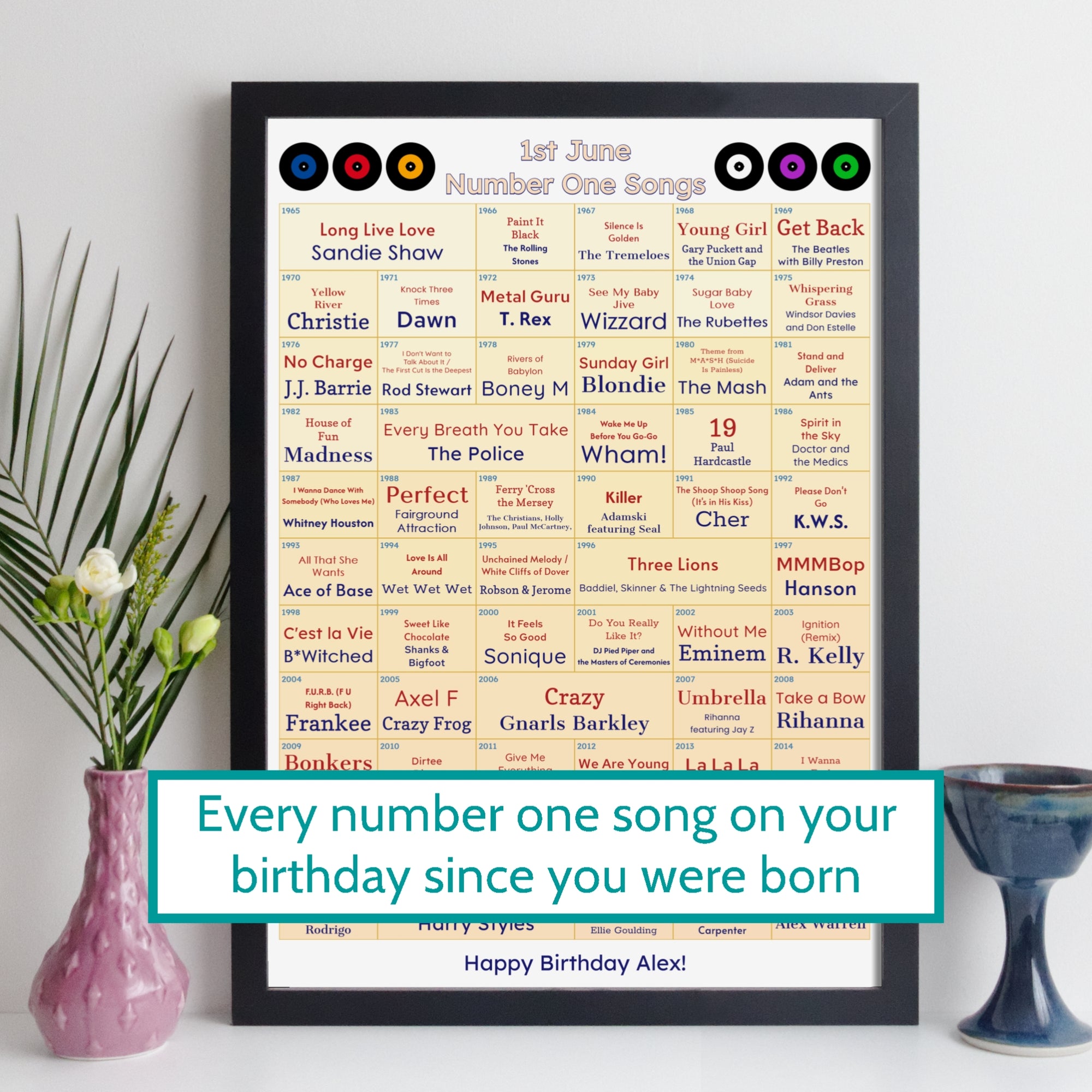 Every Number One Song On Your Birthday Since You Were Born Print – Personalised Music Gift - Birthday Gift