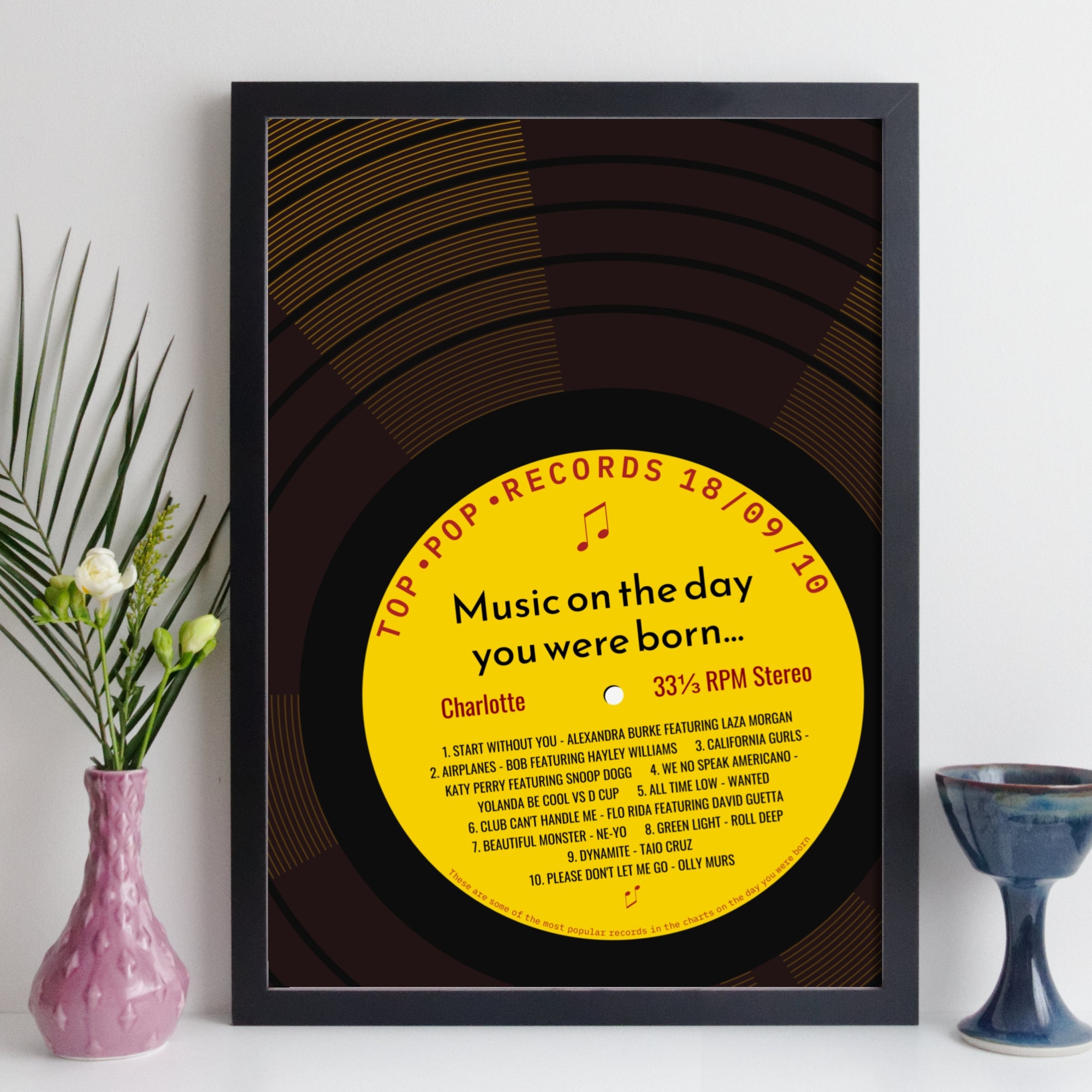 • A music themed 'day you were born' birthday gift idea for anyone who was born in the year 2010