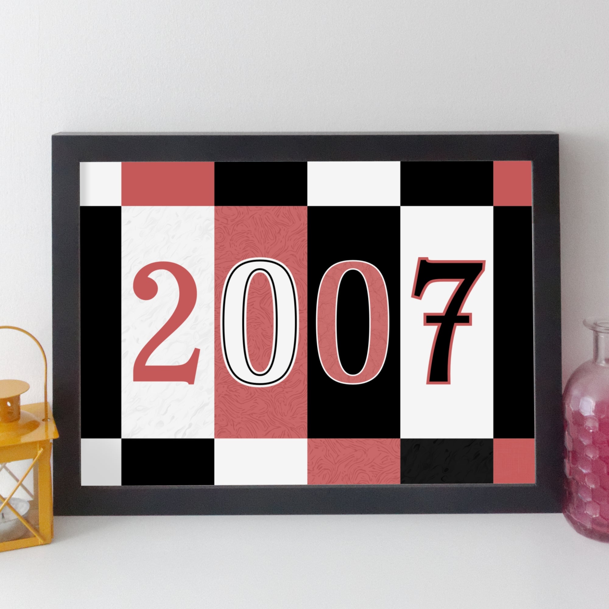Celebrate a special year with this bright and playful Personalised Year Print. This striking and quirky design shows your year in clear, bold typography and a contemporary style. It's a fun, stylish addition to any home.